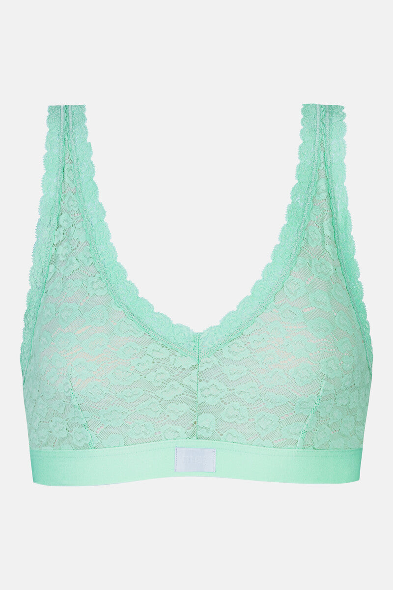 Mey's racerback slip-on bustier in beach glass from the Savage Lace series combines a modern look with high wearing comfort. The eye-catching lace design in a leopard print gives the bustier a striking, feminine look. The elastic, full-surface lace fits comfortably to the body and, in combination with the easy-sizing concept, ensures a flexible fit and comfortable wear. In addition, the bustier is certified according to Oeko-Tex® Standard 100 and stands for textiles tested for harmful substances and a good feeling on the skin