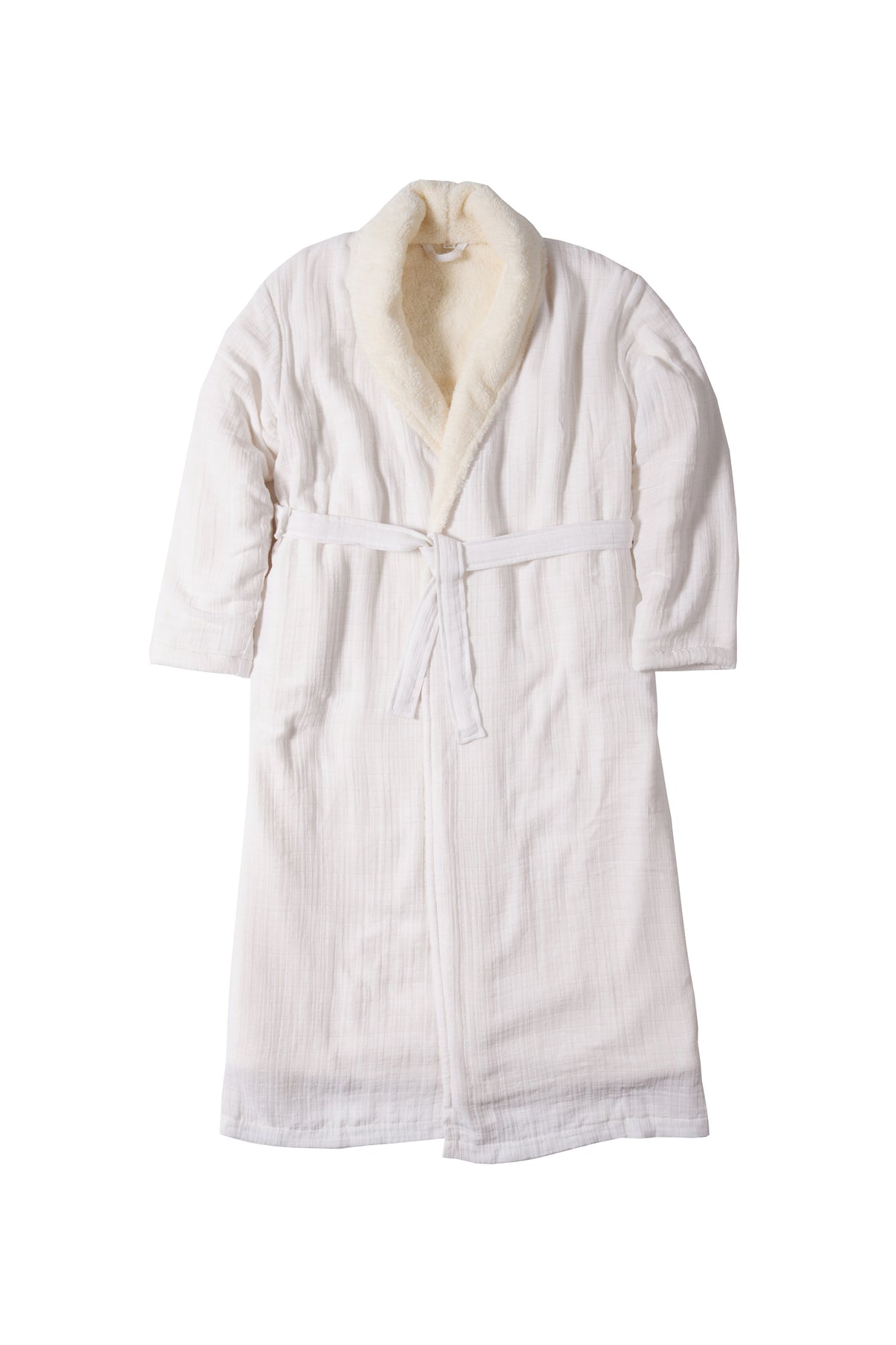 The upside to cooler weather means that you get to snuggle up in this ultra soft cotton fleece lined robe. These silky soft texture of the fleece offers a rich texture against the skin, while being lightweight and warm. Perfect for mornings around the house, lounging or for aprés bath and pool.